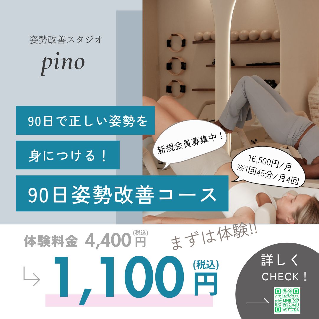 姿勢改善スタジオpinoでは、「姿勢改善」をメインとした一人ひとりにあったオリジナルメニューを作成し、パーソナルトレーニングサービスをご提供させていただいております。
