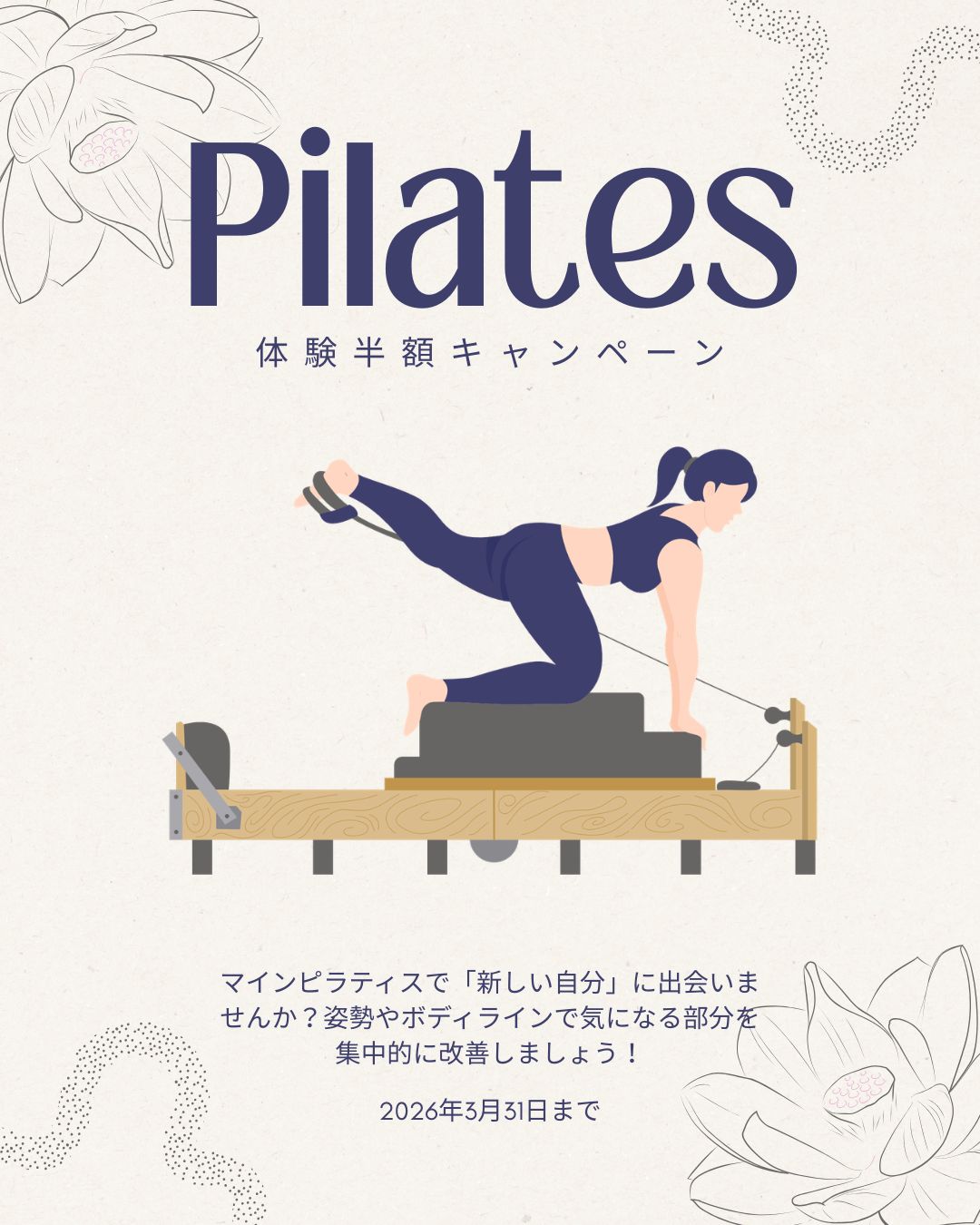 当スタジオでは、姿勢改善を中心に、お一人おひとりの体に合わせたマシンピラティスをご提供しています。